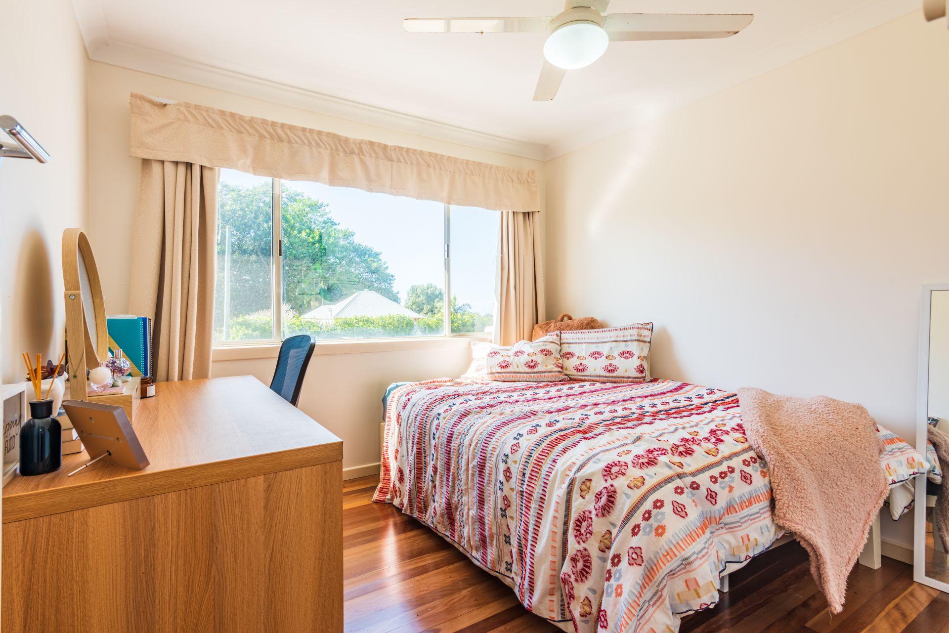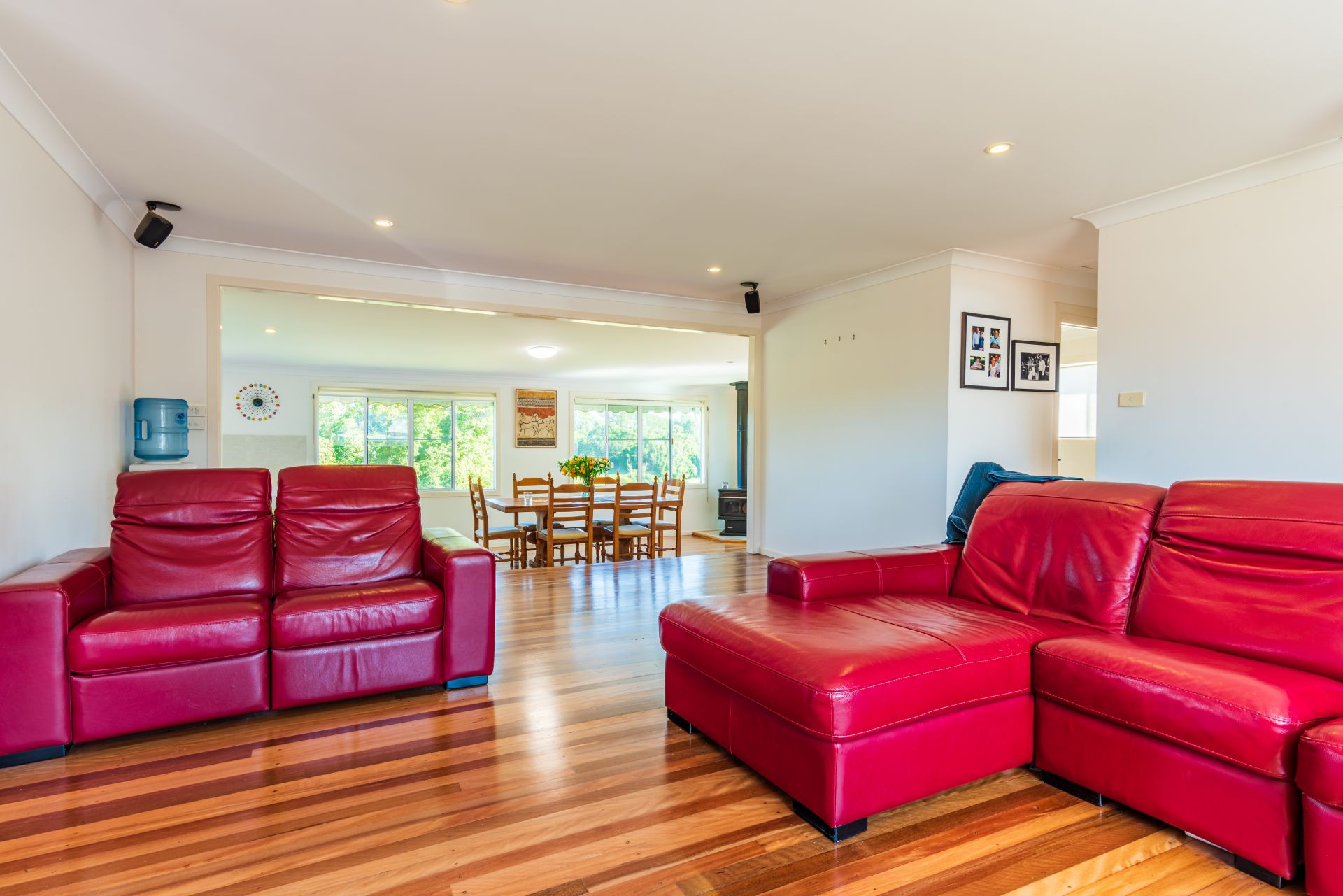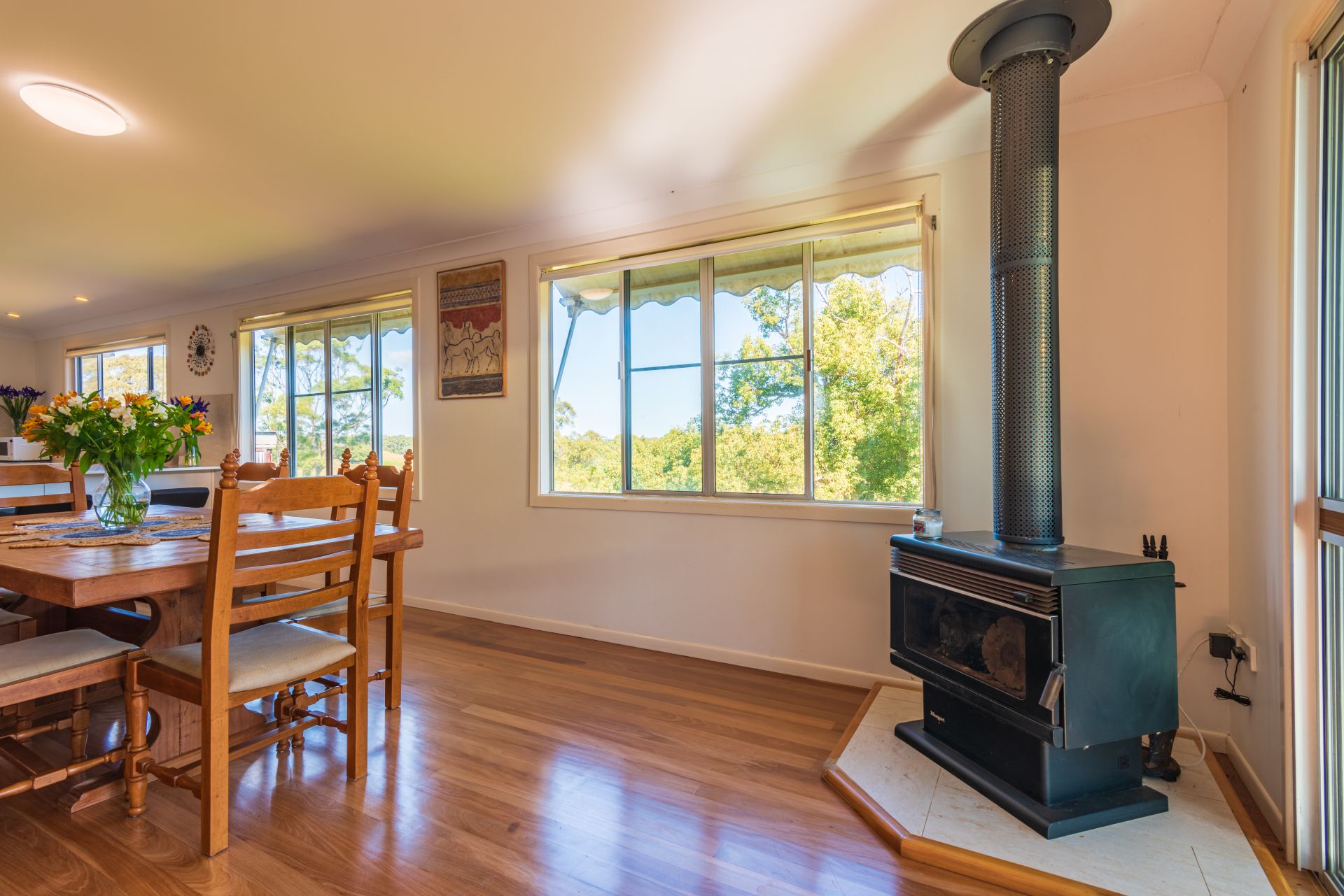 A two story home with amazing views over the picturesque, lush green rolling hills of Newrybar, where upstairs and downstairs living areas provide privacy for dual occupancy. The home has four bedrooms, two bathrooms and a modern kitchen.